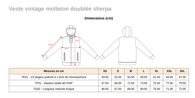 Taille | S, M, L, XL, XXL, 3XL |